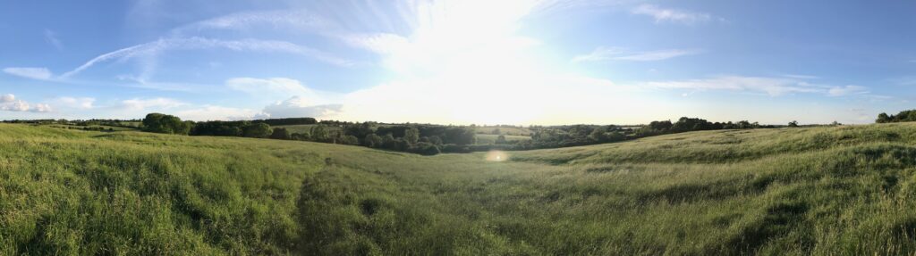 This deep-rutted path leads past a wood on the left and climbs steadily up past Monk’s Grave to the site of the Medieval Village of Ingarsby. After admiring the view from the top of the hill, find the footpath to the left that leads to Ingarsby Lane. Follow the lane downhill and take the footpath on the left just before the bend in the road to the right. Continue northwest along this path through fields until you reach a farm track that crosses the path.