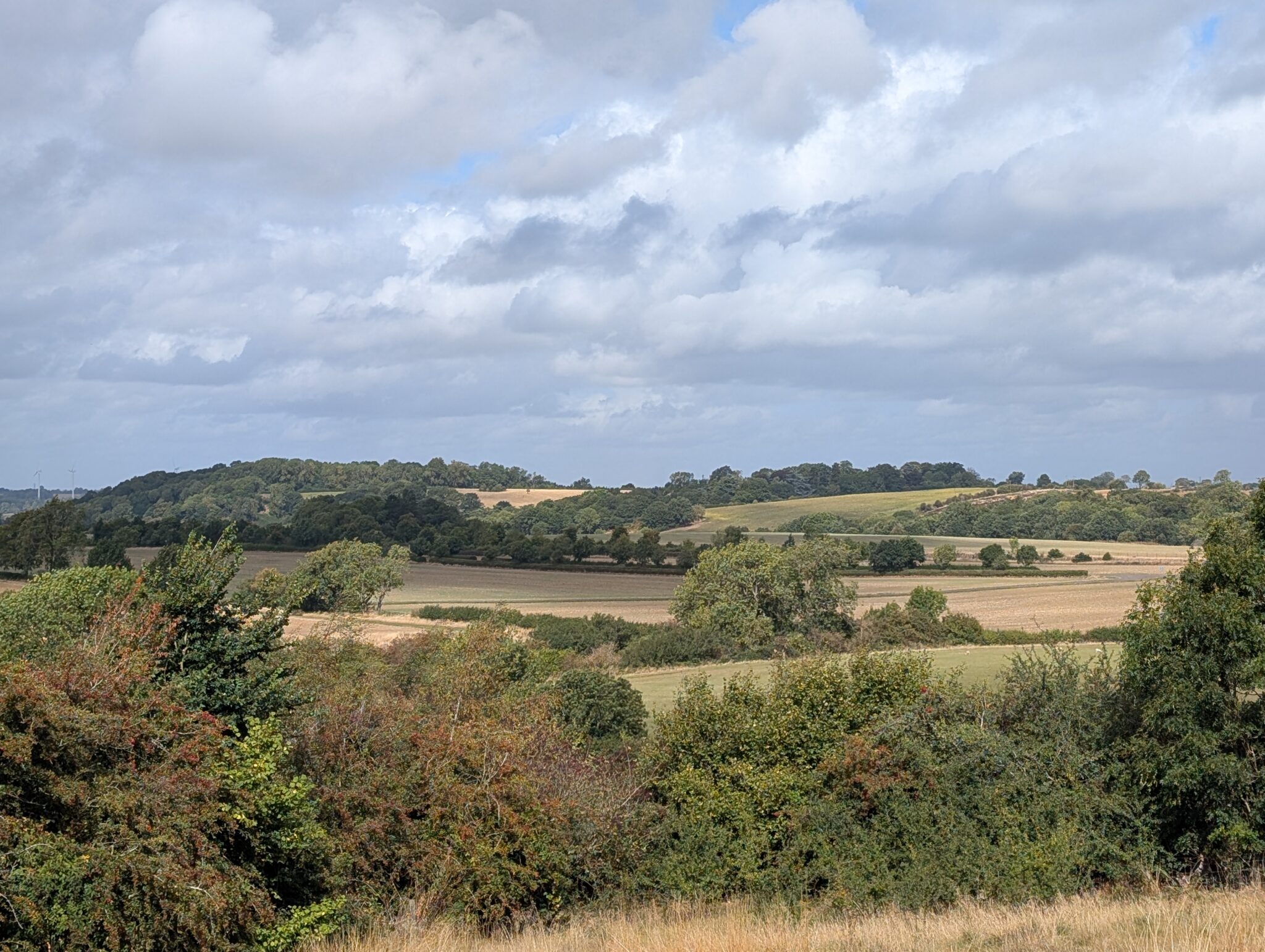 At the triangle in the road, we took the right fork and passed Manor Farm, resisting the urge to moo back at the cows. The track climbed gently to the highest point of the walk — not Everest, but enough to feel smug. It dipped, rose again, then flattened out like a pancake for the rest of the journey.